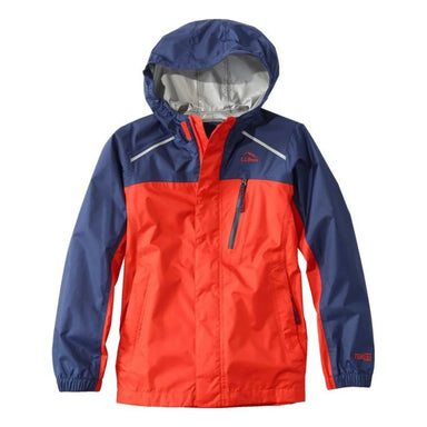 • LL Bean Kids' Trail Model Rain Jacket, Colorblock in orange & night, flat front view