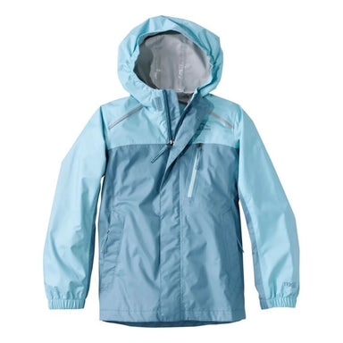 LL Bean Kids' Trail Model Rain Jacket, Colorblock in cadet blue & ocean, flat front view